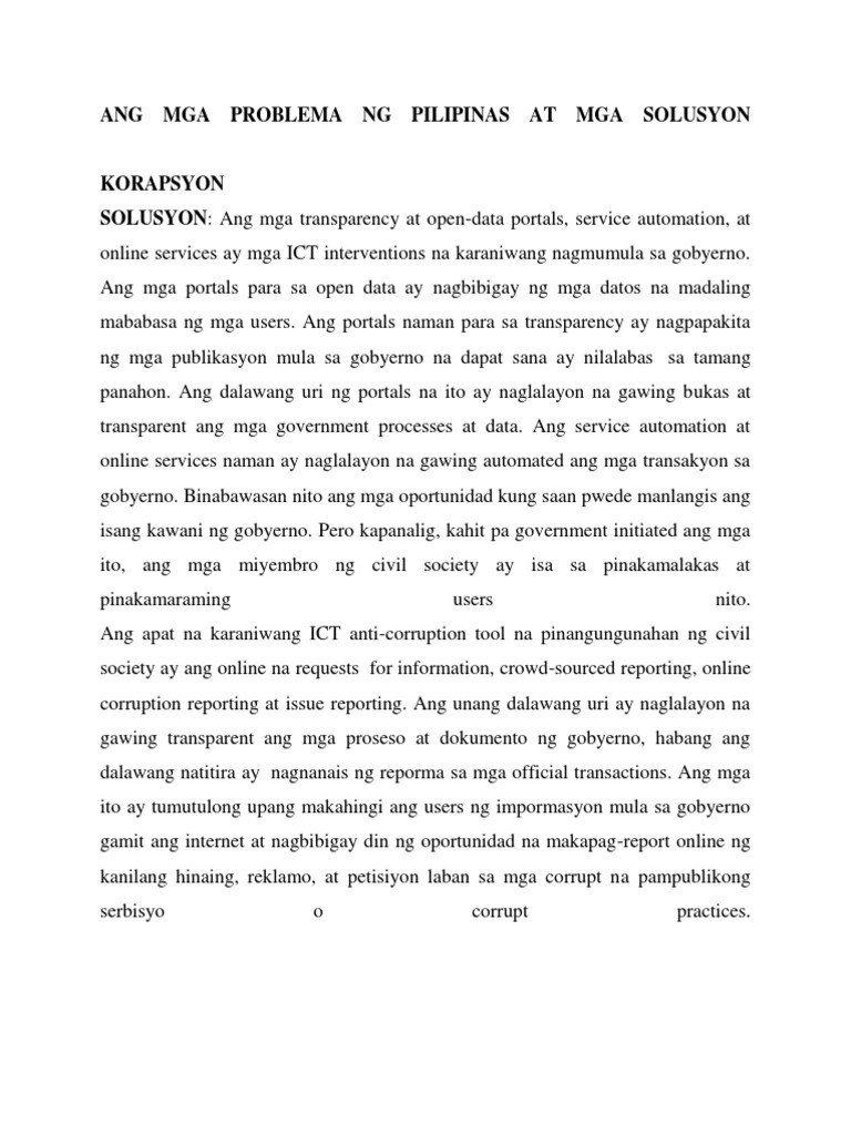 Ang Mga Problema Ng Pilipinas At Mga Solusyon Pdf