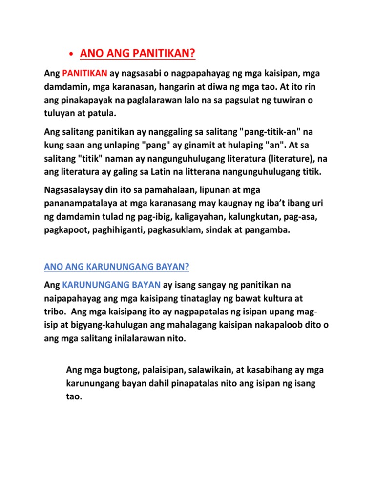 I PAUNANG SALITA Kasabay ng pag-unlad ng bayan ang pag-unlad ng kaniyang mamamayan sa lahat ng aspeto ng buhay Tugon sa pag-unlad at pagbabago sa bawat sulok ng mundo ang pagyakap at pakikipagsabayan sa agos na ito ng Panitikang Pilipino. Mga Halimbawa ng Bulong 1. MGA KARUNUNGANG-BAYAN Ang mga bugtong palaisipan salawikain at kasabihan ay itinuturing na karunungang-bayan dahil nagpapatalas ito ng isipan upang mag-isip at bigyang-kahulugan ang mahalagang kaisipang nakapaloob dito o.