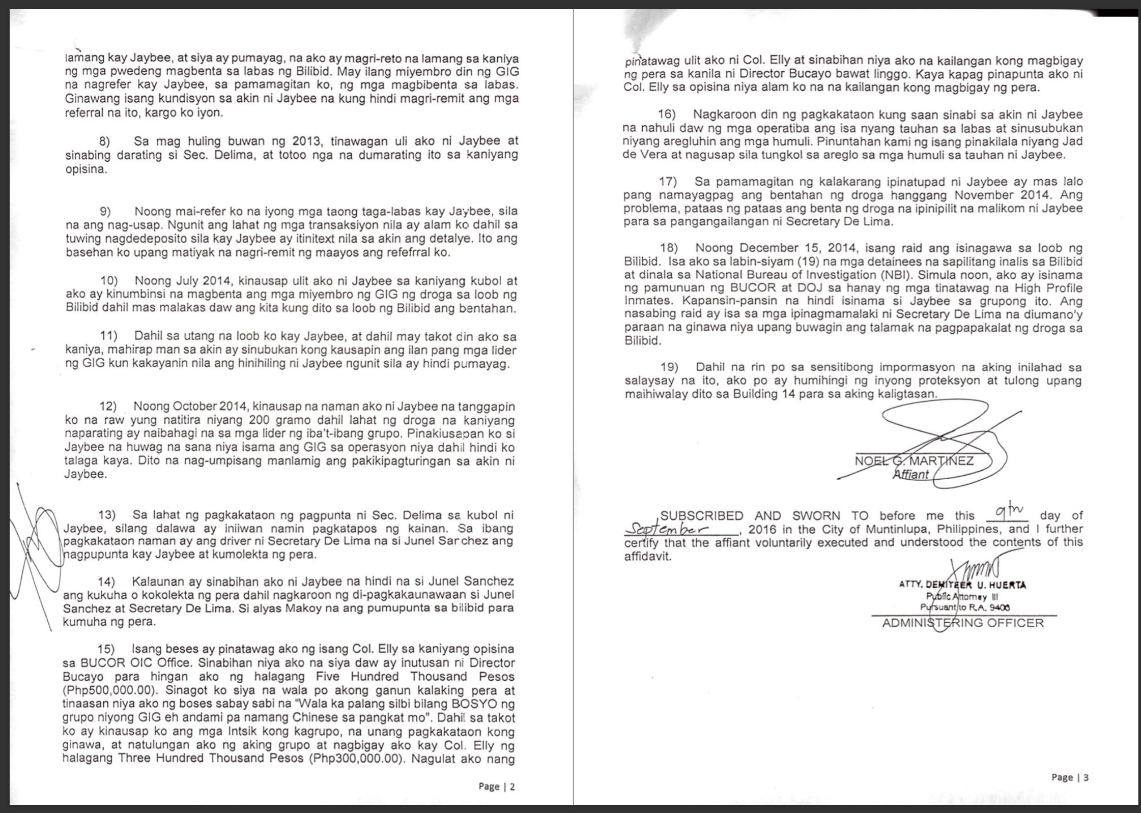 Bea Cupin On Twitter Photo Affidavit Of Noel Martinez A Bilibid Convict Who Is Testifying Today Https T Co Fs7hcda6qs Twitter
